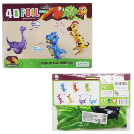 4D шары в виде динозавров украсят любой детский праздник. Высота шара - 75 см. Лапы динозавра надуваются отдельно и крепятся к туловищу с помощью специальных креплений. В комплекте так же есть трубочка для надувания шара.Характеристики