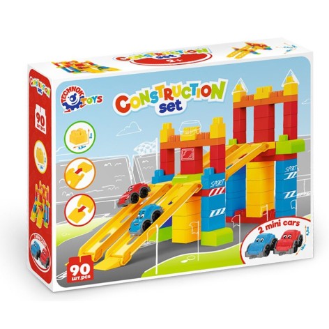 Конструктор з великими деталями – ідеальний вибір для малюків! Він дозволяє створити яскраву конструкцію із захоплюючими гірками, якими можуть з'їжджати включені в комплект 2 гоночні машинки розміром 10х4.5 см. Ваша дитина буде насолоджуватися грою і розвивати моторику і творче мислення. Розмір одного елемента: 5.8 х 5 см__Бренд: Технок