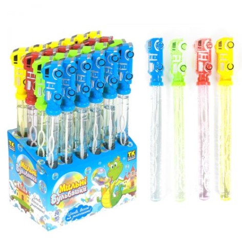 Мыльные пузыри в колбе. Рамка-ручка для запускания выполнена в виде грузовика. С помощью рамки с 5-ю отверстиями - можно сразу запускать множество пузырей. Размер одной колбы: 36 см. Разные цвета: красный, синий, жёлтый и салатовый. Цена за упаковку (24 шт).Характеристики