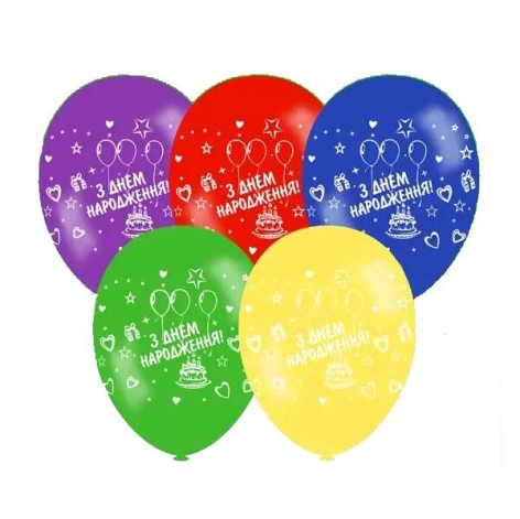 Кулька латексна 12" пастель асорті з мал. "З ДНЕМ НАРОДЖЕННЯ (тортик)" (100шт/уп)