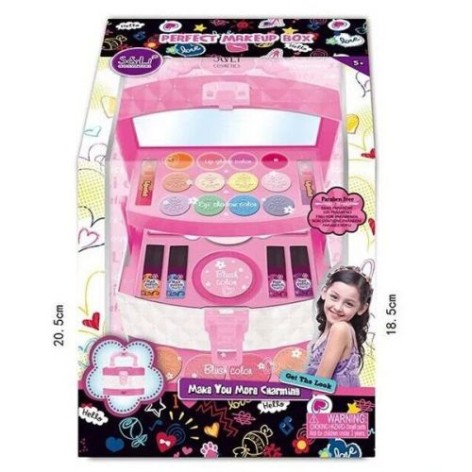Уценка. (Повреждена упаковка ) Набор косметики в красивом чемоданчике будет прекрасным подарком для юной леди. В наборе есть: палетка разноцветных теней, палетка блесков для губ, 4 лака для ногтей, румяна, кисти для макияжа. Все элементы набора выполнены из качественных и безопасных материалов, состав есть на упаковке. Для детей от 5-ти лет.Характеристики